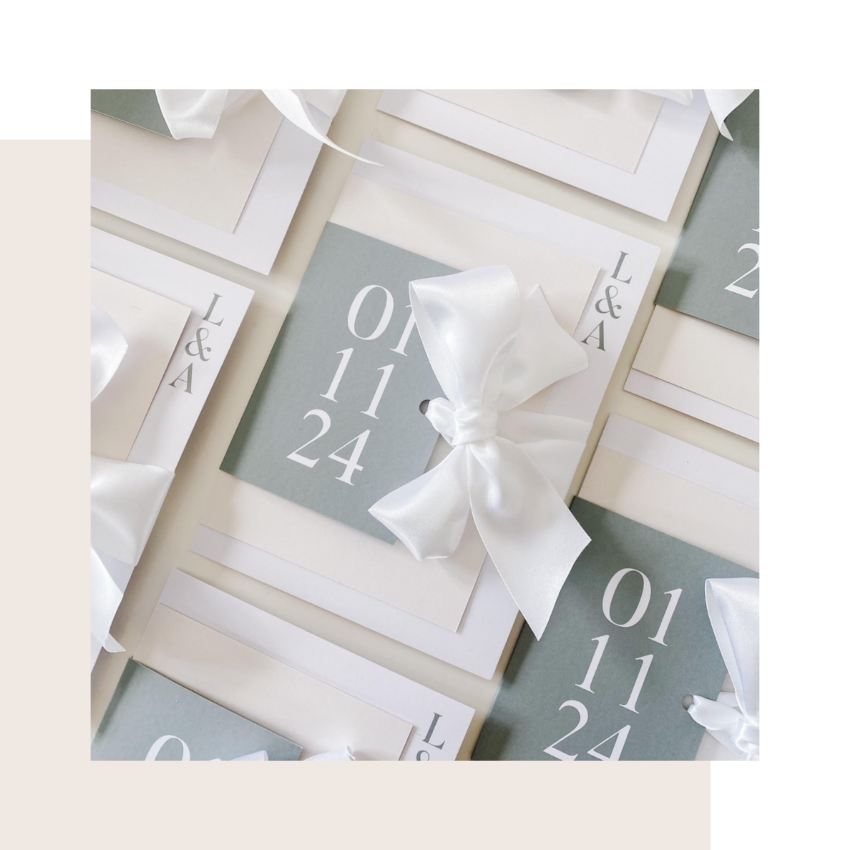 Each collection is customised just for you! From changing the wording and colours as well as shapes and sizes. All so you can, tell your love story through the designs and colours which reflect your personalities.