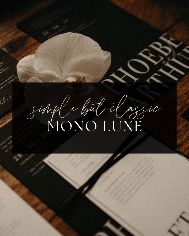 Simplicity and sophistication in its finest, black and white is truly a match made in heaven. With its minimalist and refined aesthetic this suite oozes timeless style. Ranging from save the dates to invitations and a range of on the day stationery and signage items. Customise in any colour and shape combinations to suit your wedding style.