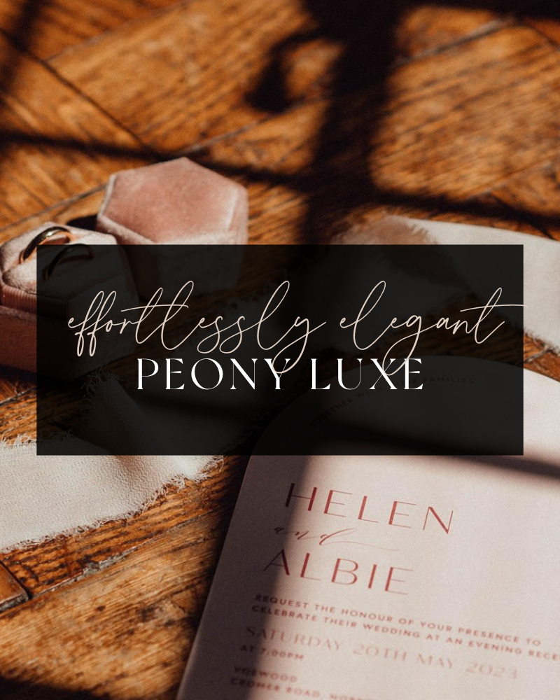 Romantic and effortlessly elegant, the Peony Luxe suite oozes style with its arch shaped invitations and subtle colourings. Ranging from save the dates to invitations and a range of on the day stationery and signage items. Customise in any colour and shape combinations to suit your wedding style.