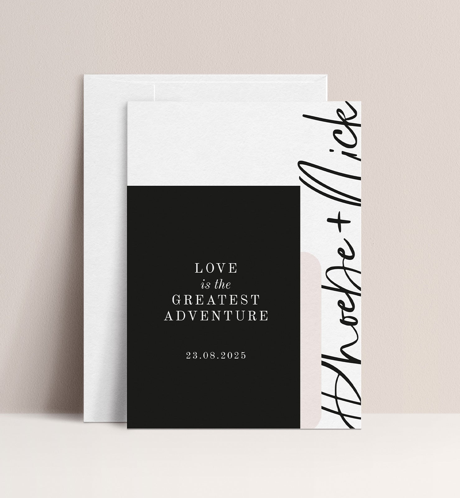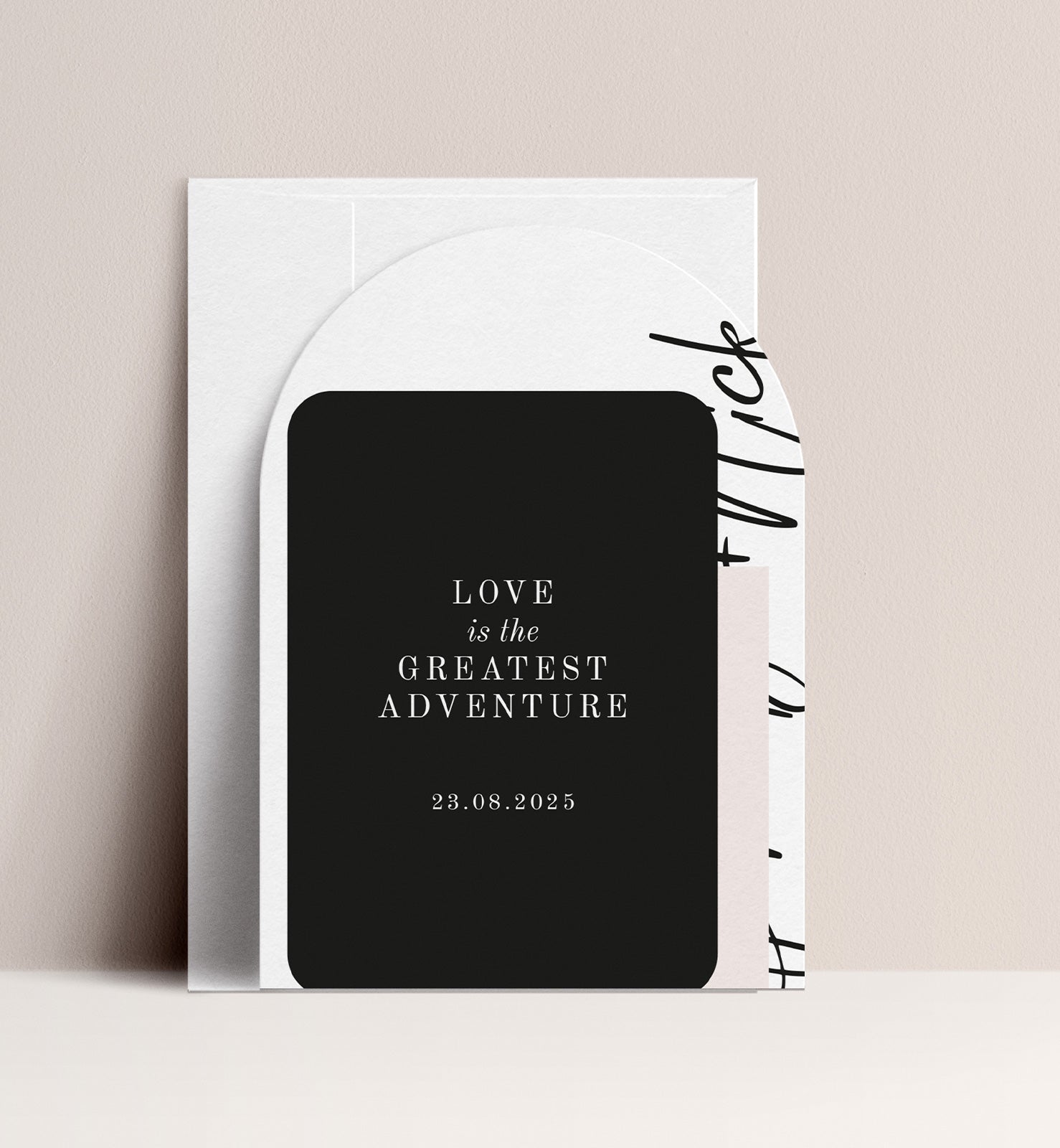 Invitation (127x178mm), Details card (A6) and RSVP card (A6, A7 or 105x105mm). Sizes and shapes will be confirmed on proofing depending on how the wording fits best to each card. All packages come with plain white invitation and RSVP envelopes.