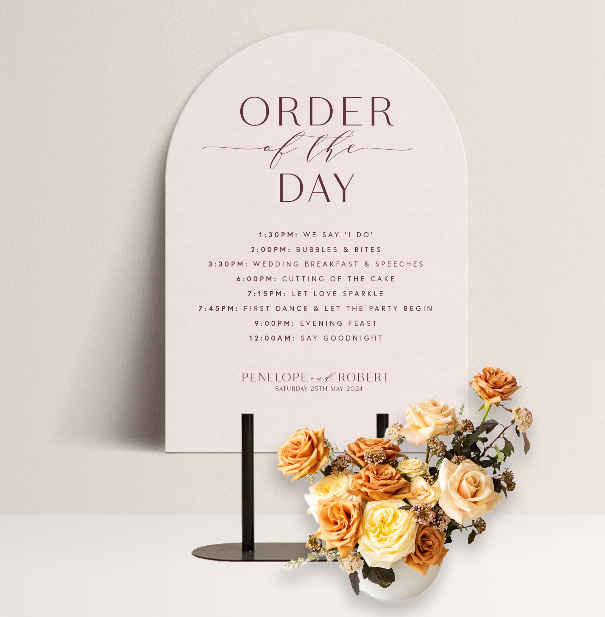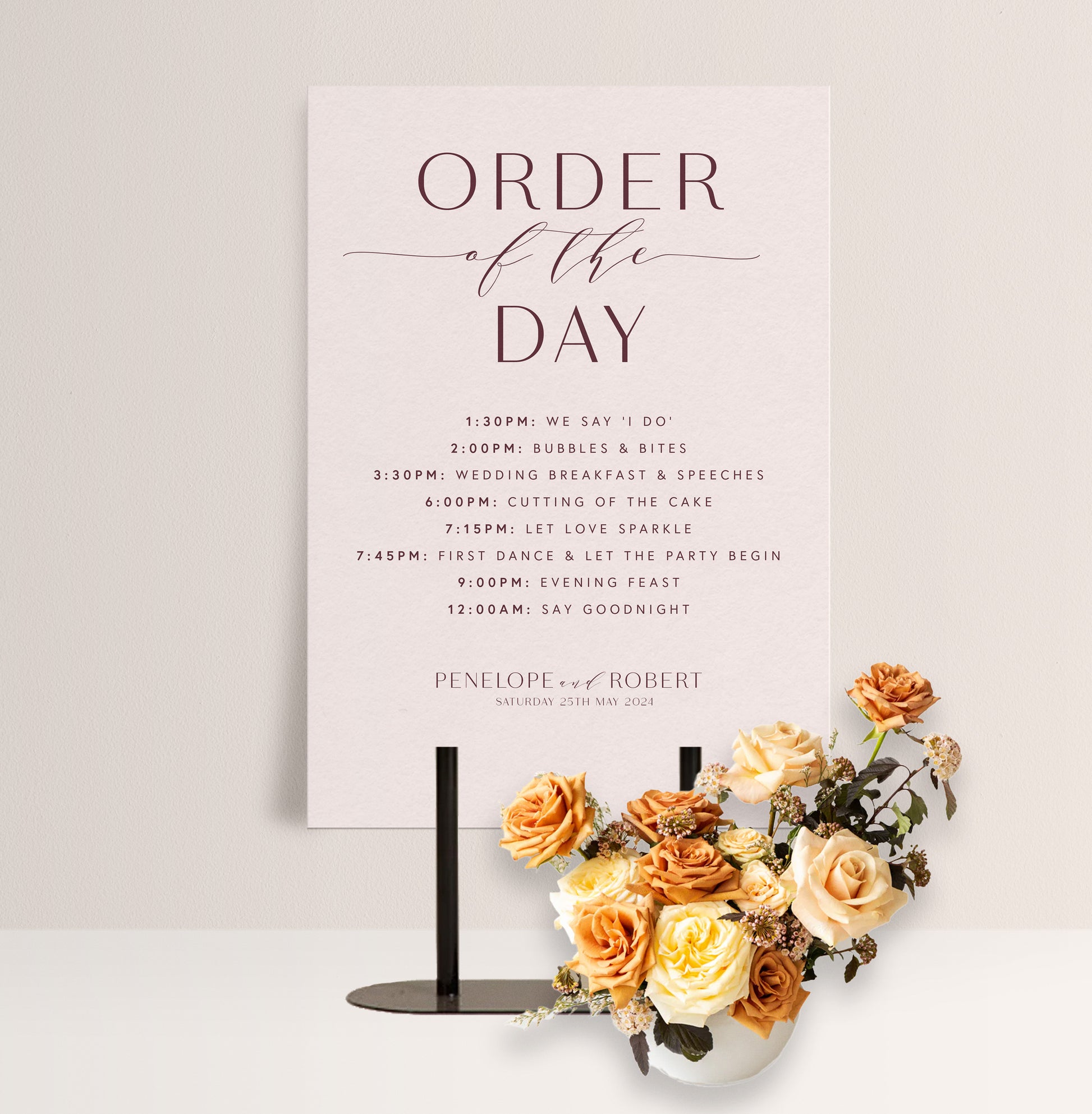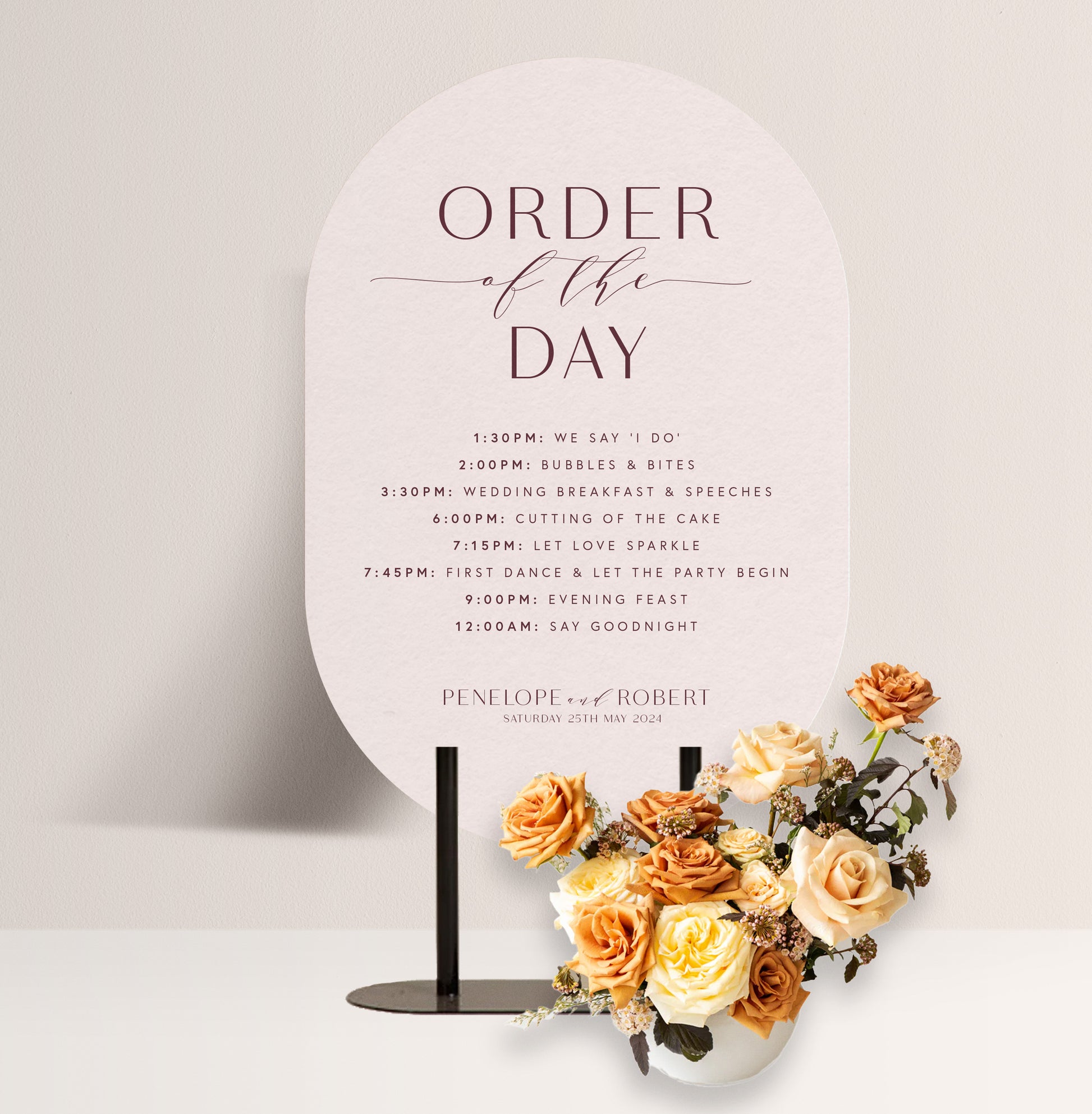 PEONY LUXE ORDER OF THE DAY SIGN