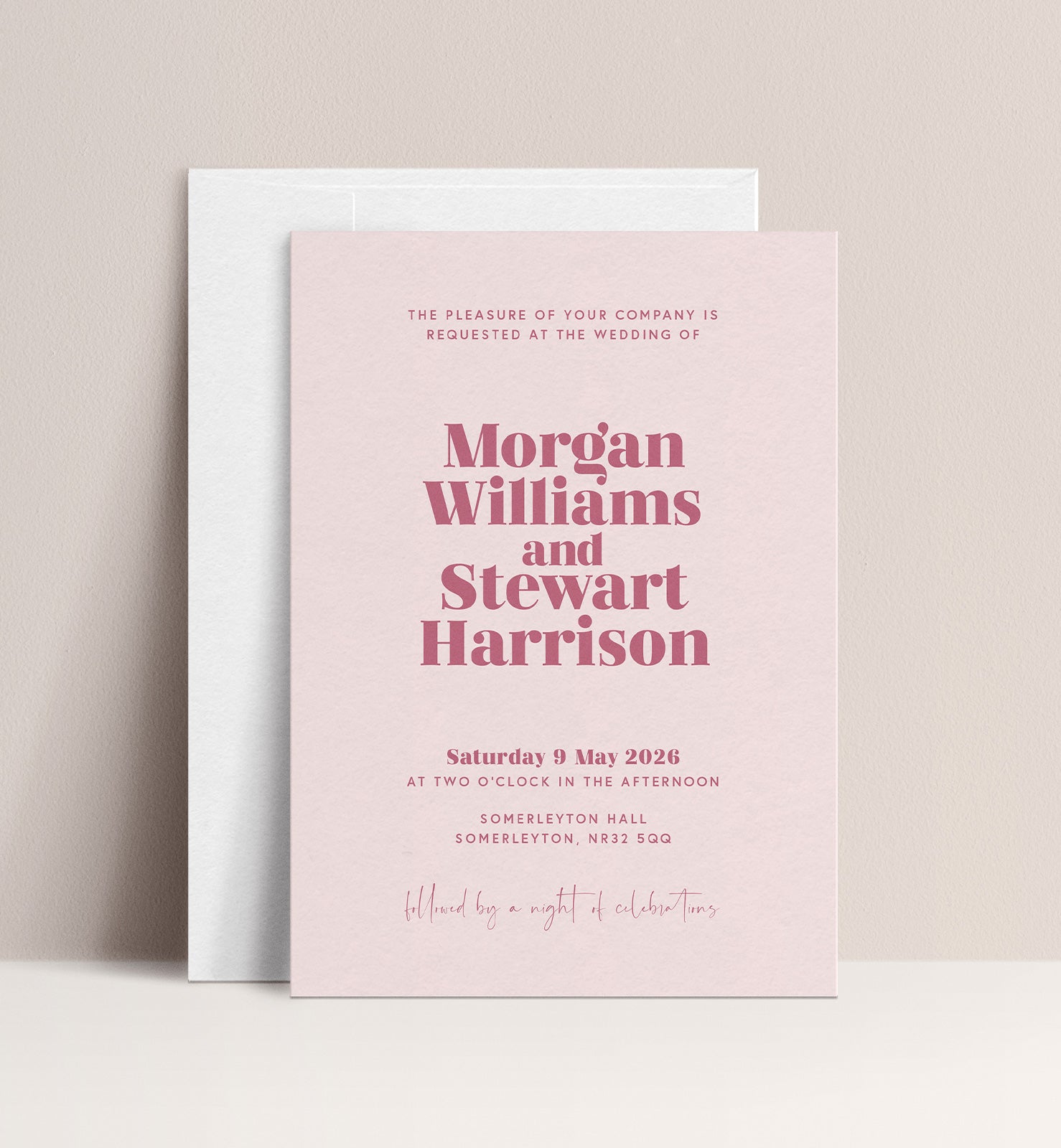 Invitation (127x178mm), Details card (A6). All packages come with plain white invitation envelopes.
