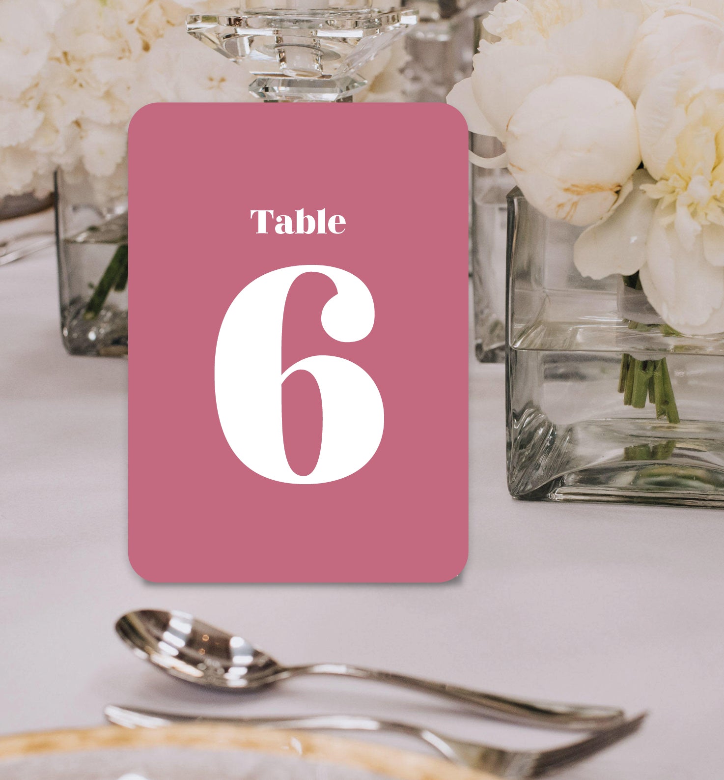 A6 (105x148mm) Table numbers/names in your chosen shape and colours. Numbers will be printed to one side only.