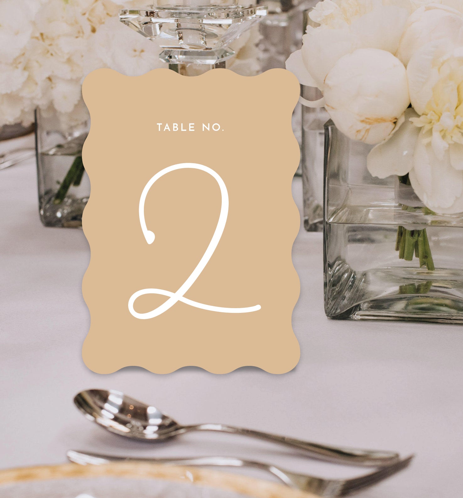 A6 (105x148mm) Table numbers/names in your chosen shape and colours. Numbers will be printed to one side only.